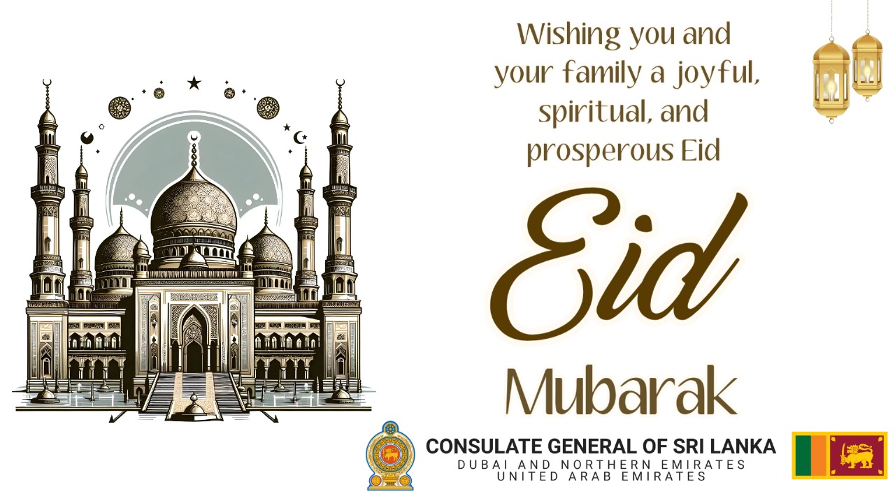 Eid Al Adha Mubarak Gallery Eid Al Adha Mubarak Consular Service, Dubai, Economy, Events, Events in Sri Lanka, Gulf Food, Holiday Notice, News, Press Releases, Special Notice, Sri Lanka, Travel, Visa Services Eid Al Adha Mubarak By Consulate General of Sri Lanka| 2025-06-18T06:00:37+00:00 June 6th, 2025|Consular Service, Dubai, Economy, Events, Events in Sri Lanka, Gulf Food, Holiday Notice, News, Press Releases, Special Notice, Sri Lanka, Travel, Visa Services|0 Comments Read More
