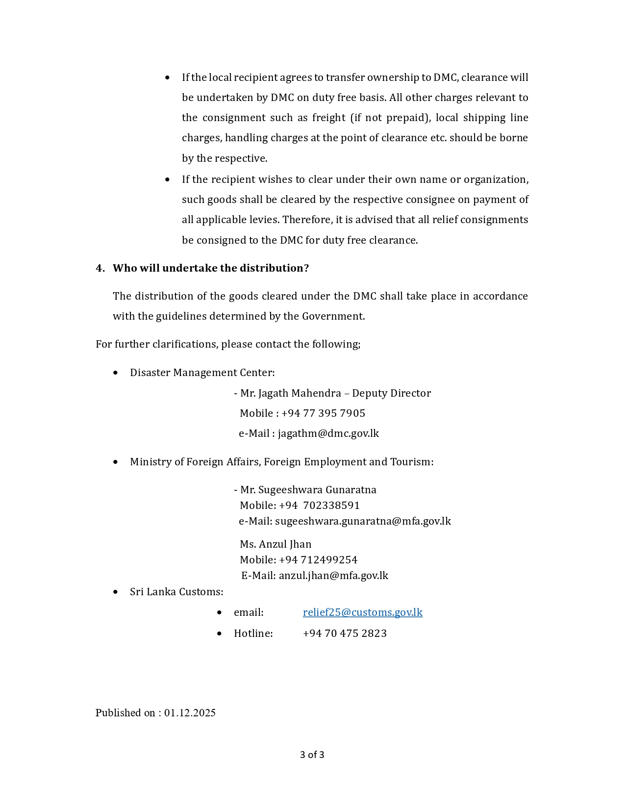 Donating Relief Cargo for Humanitarian Operations in Sri Lanka. By Consulate General of Sri Lanka| 2025-12-01T09:04:11+00:00 December 1st, 2025|Consular Service, Dubai, Economy, Events, Events in Sri Lanka, Gulf Food, Press Releases, Special Notice|0 Comments Share This Story, Choose Your Platform! FacebookTwitterLinkedinRedditTumblrGoogle+PinterestVkEmail Related Posts On the Occasion of the Sinhala and Tamil New Year ,H.E the President extends his warmest wishes for peace,prosperity,and unity. On the Occasion of the Sinhala and Tamil New Year ,H.E the President extends his warmest wishes for peace,prosperity,and unity. Message from the Hon. Prime Minister on the Occasion of the Sinhala and Tamil New Year Message from the Hon. Prime Minister on the Occasion of the Sinhala and Tamil New Year Message of the Minister of Foreign Affairs, Foreign Employment and Tourism on the occasion of the Sinhala and Tamil New Year Message of the Minister of Foreign Affairs, Foreign Employment and Tourism on the occasion of the Sinhala and Tamil New Year Wishing you a Happy Sinhala and Tamil New Year filled with peace and happiness …! Wishing you a Happy Sinhala and Tamil New Year filled with peace and happiness …! HOLIDAY NOTICE HOLIDAY NOTICE
